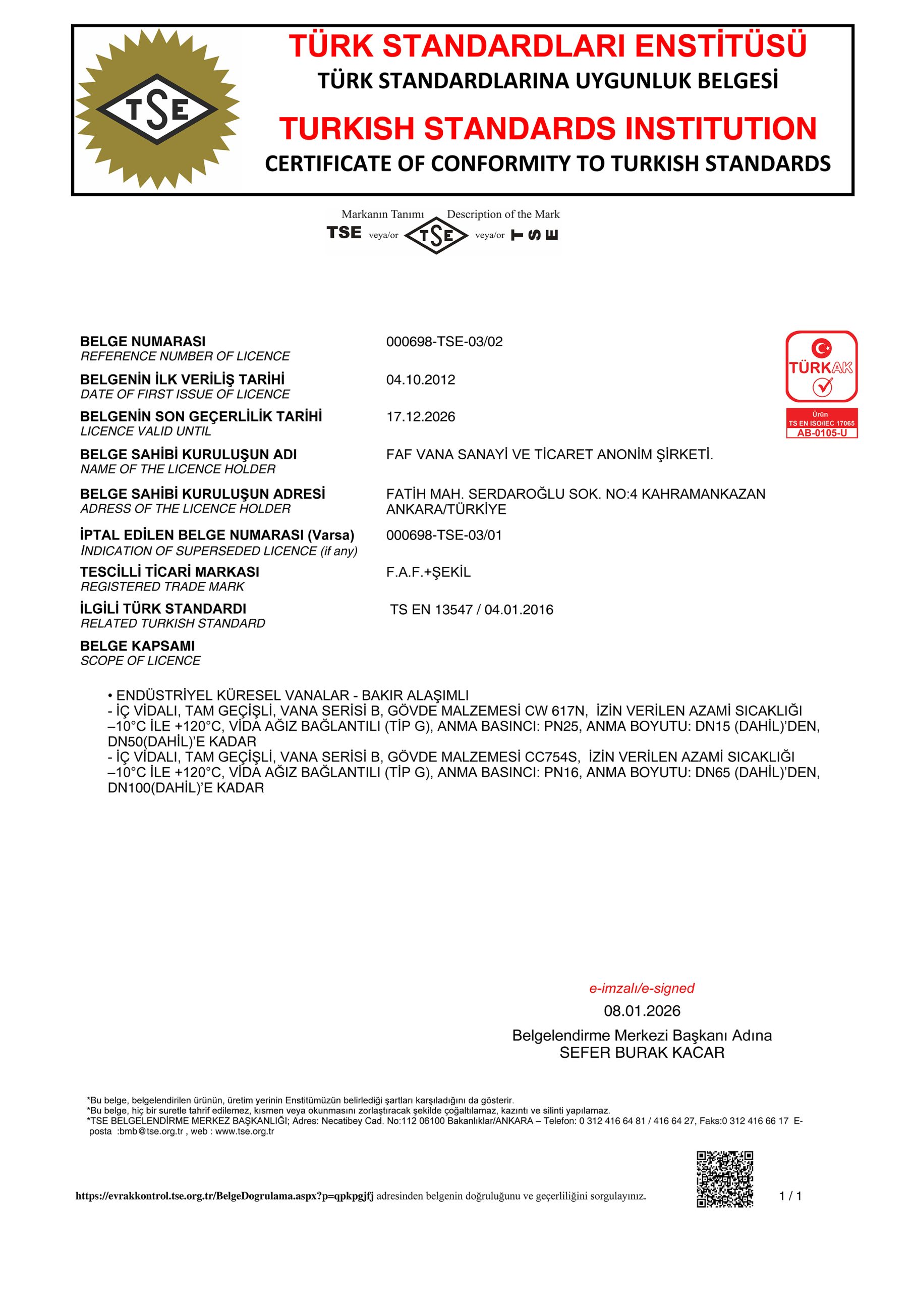 Quality Certificates
